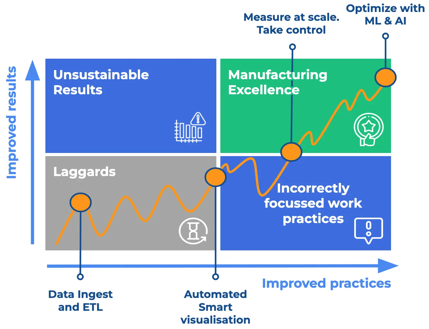 Our team of former manufacturers and specialised data scientists helps customers establish repeatable data-driven practices that sustainably contribute to manufacturing excellence.